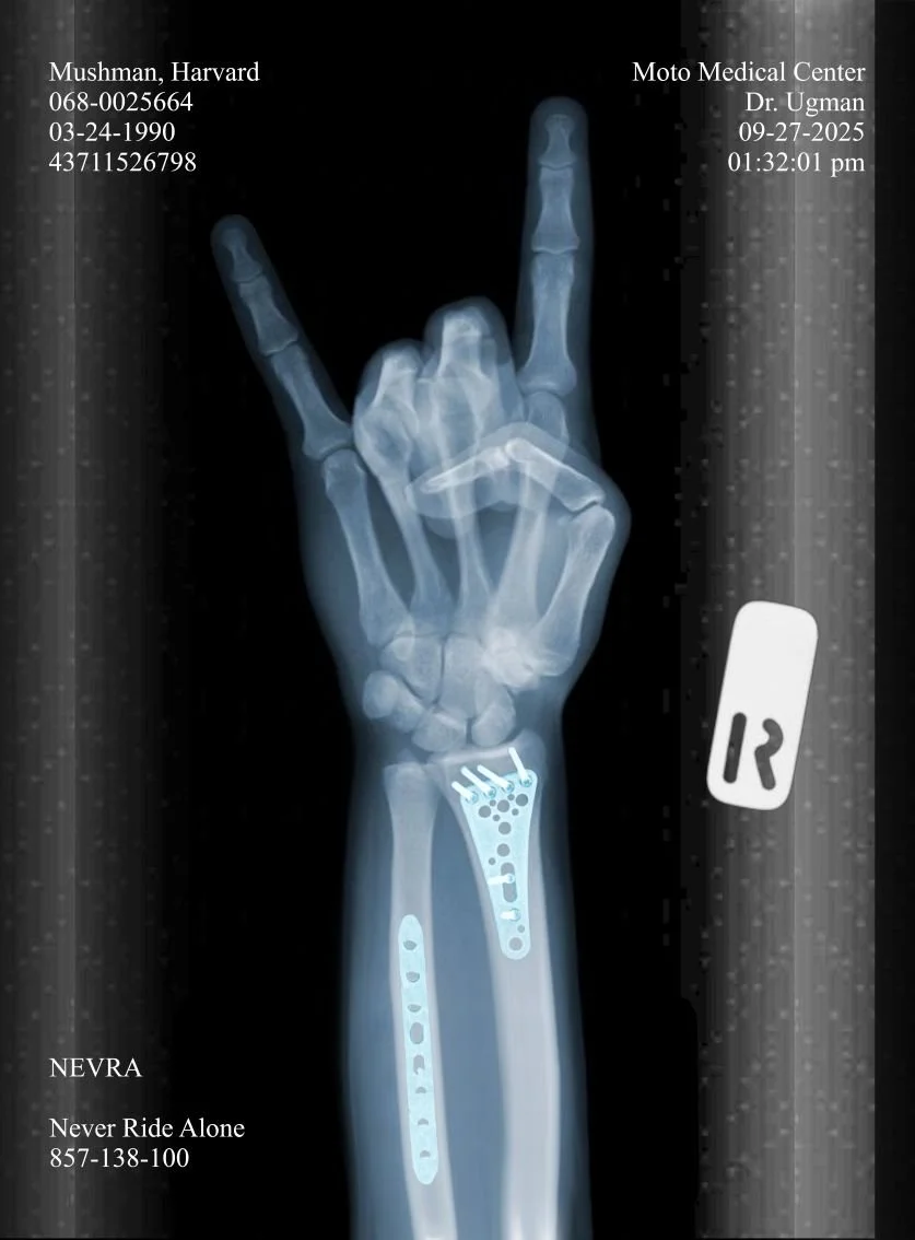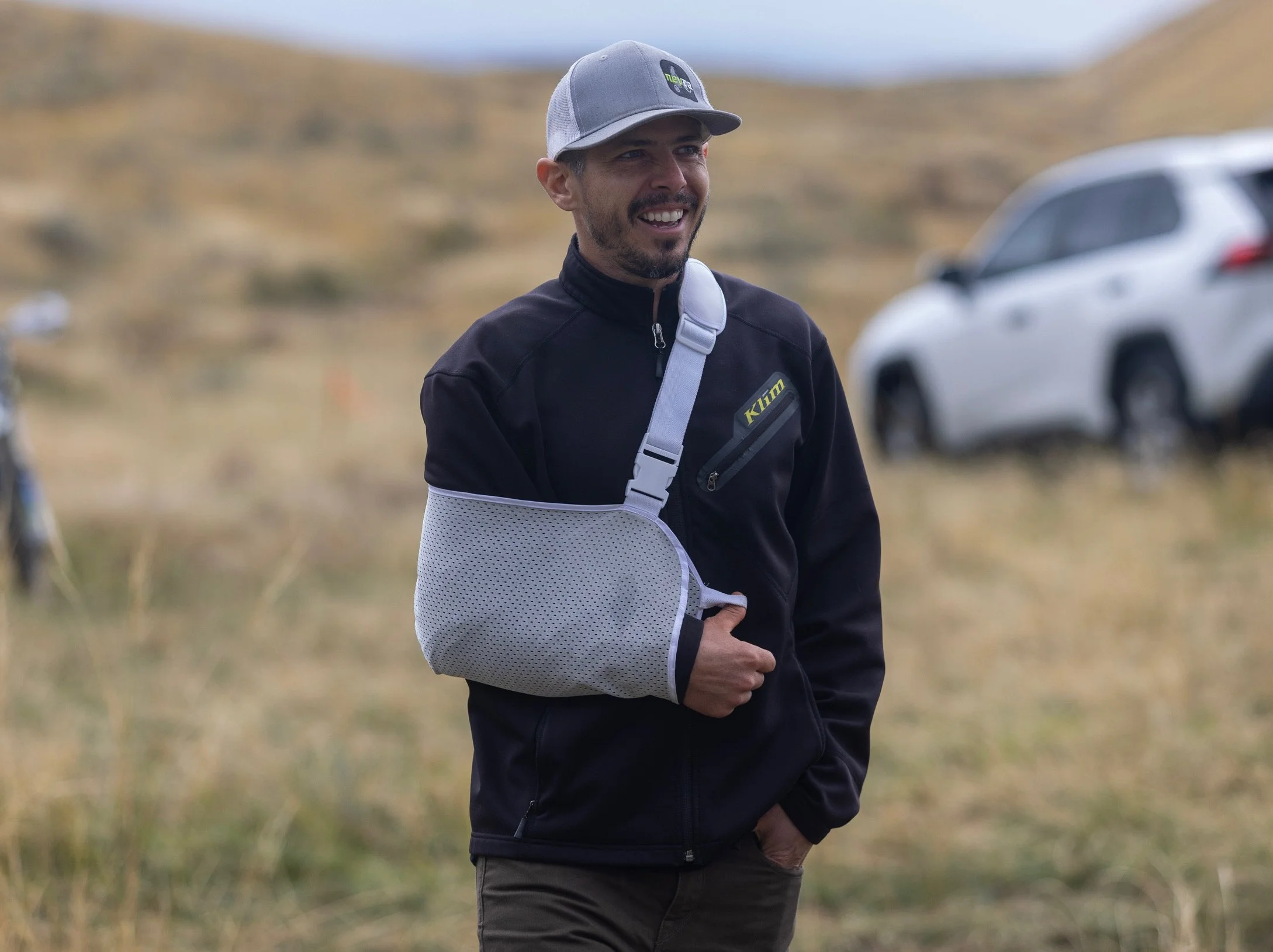 After the other riders assessed the situation and my condition, we started taking action. One of the riders with me, Charlie, fashioned a sling/splint out of my hand saw from my backpack and some rope he had in his pack. Brian road ahead to pick the best path forward to get back down to a vehicle. Fortunately where we were at only required about a half mile walk to the trail head. As we walked I found it hard to breath and just chalked it up to anxiety or adrenaline. I’d later learn that this was because of three broken ribs and a partially collapsed lung. Another rider in our group, Brock, was able to drive me back into town where we met up with my wife then headed to the hospital to get x-rays and make a surgery plan.