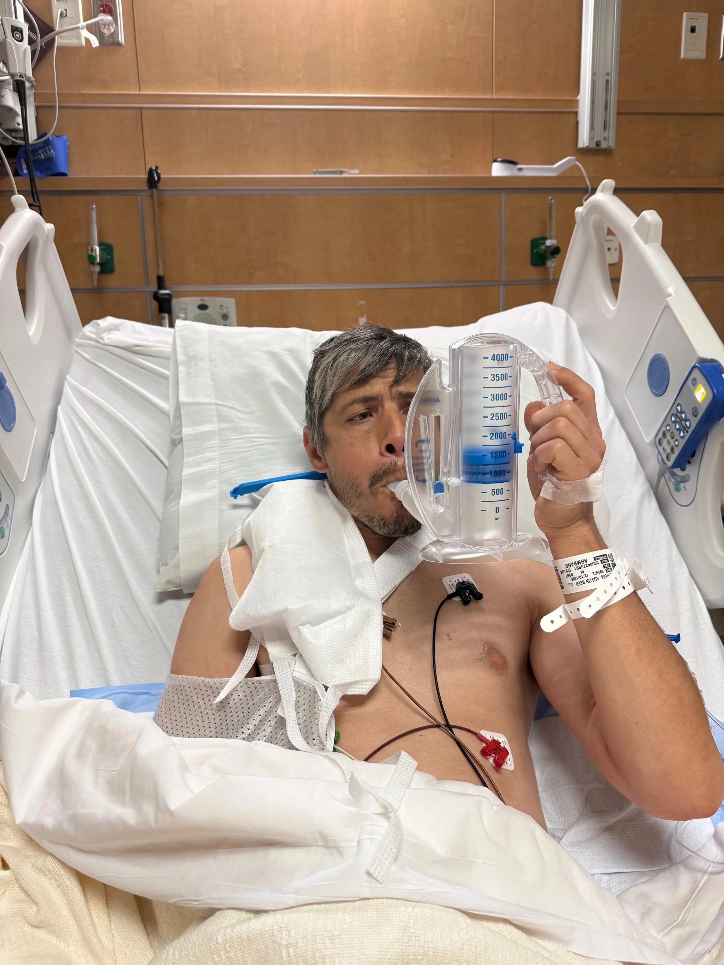 In the hospital it became apparent that the doctors and nurses cared less about my collar bone pushing my skin up and more concerned about my lung. After a CT scan we learned that my right lung was collapsed at the top and then partially down by a couple of the rib fractures, in total a little over 10%. This is good news because I later learned that at 15% they go in with a chest tube. At this point they admitted me and for the first time in my life I had to spend the night in the hospital hooked up to an IV, heart monitors and everything else. The hospital is serious stuff, they come in about every hour to poke you with a needle or fill you full of pills, then in the morning have the audacity to ask you how you slept. They liked me so much, they decided to keep me another night to make sure my lung would improve. I finally got release about noon on Tuesday, 41 hours after my arrival.